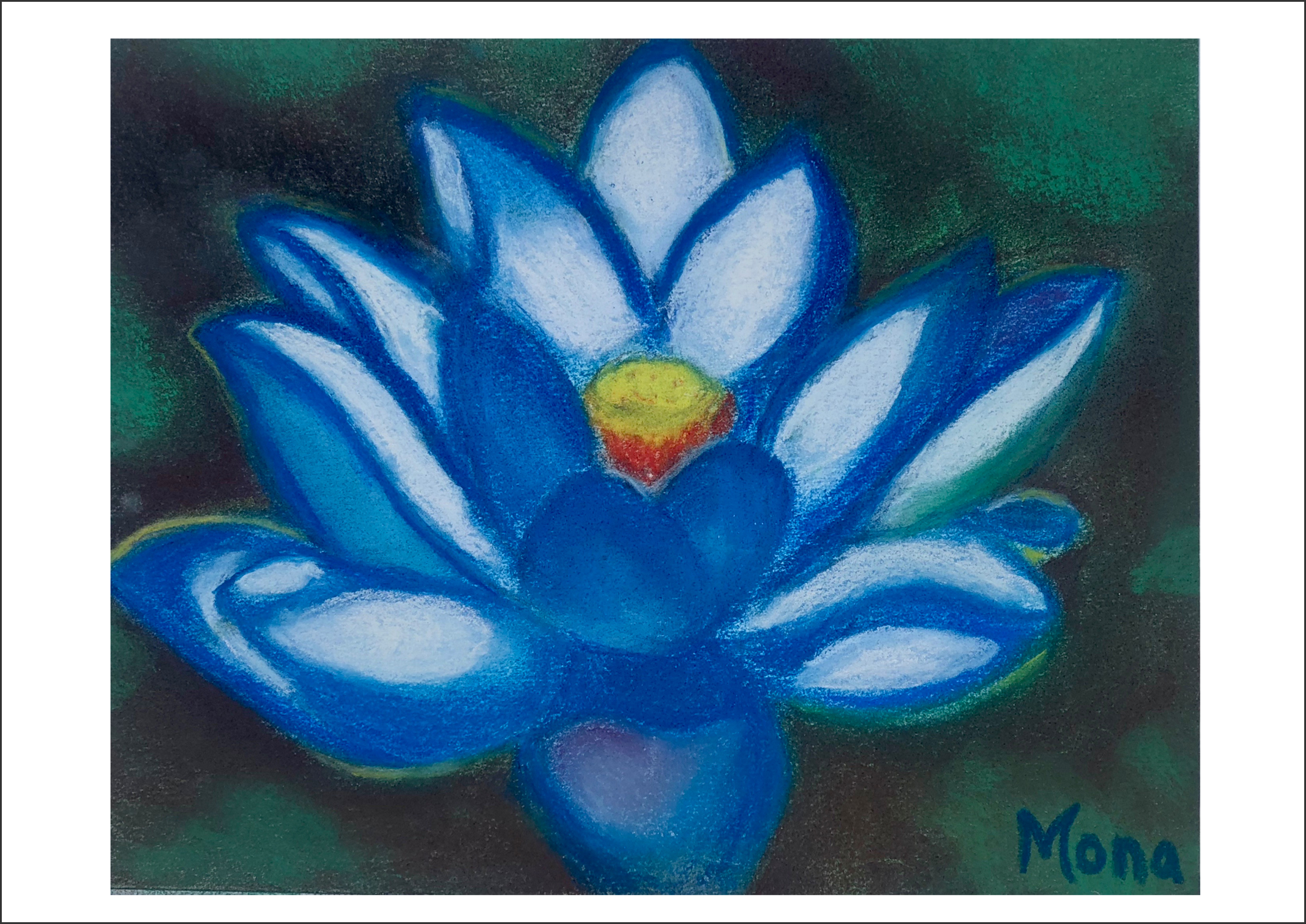 / Pastel #16Blue Lotus with Red Center